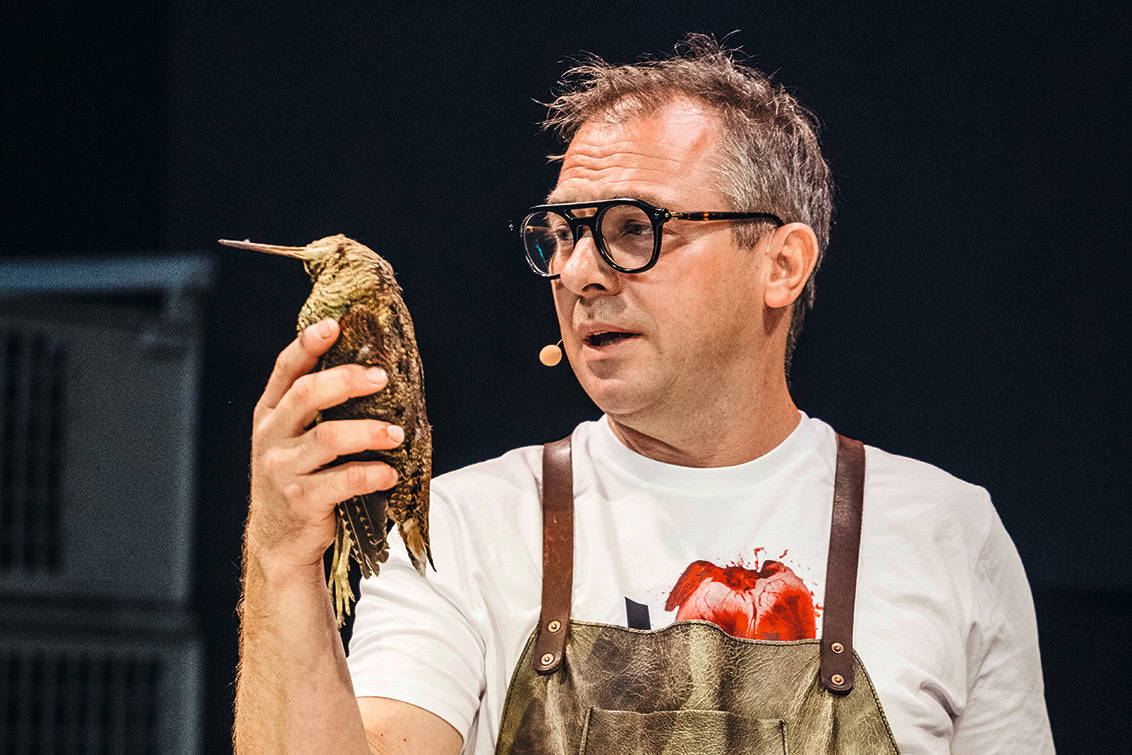 Dass das Areal Böhler um so viel größer ist als die Vorgänger-Location, davon ist kurz, bevor die Eröffnungszeremonie losgeht, gar nicht so viel zu spüren. Einfach, weil auch dieses Mal der Zuschauersaal vor Menschen überquillt, die aus allen Ecken des deutschsprachigen Raums angereist sind. Die meisten wissen zwar, dass in wenigen Momenten Max Stiegl die Bühne betreten wird. Was es aber mit den toten Vögeln auf der Küchenzeile in der Mitte der Mainstage auf sich hat, verstehen auf den ersten Blick die wenigsten.