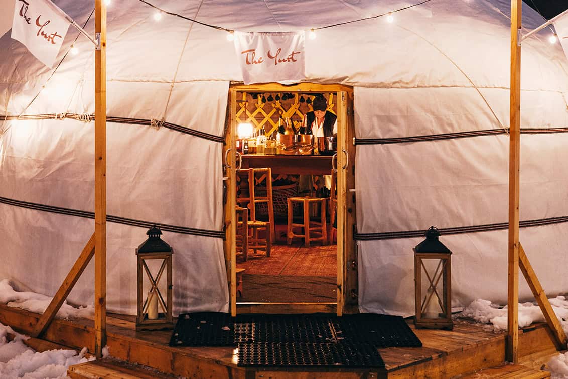 Eine Jurte ist per Definition ein traditionelles Zelt der Nomaden in Zentralasien, besonders verbreitet in der Mongolei, Kirgisistan und in Kasachstan. Doch was macht so ein Hirtennomaden-Zelt bereits in der fünften Wintersaison inmitten des noblen Skiparadieses Lech am Arlberg? Spaß! Umfunktioniert in eine hippe Pop-up-Bar vor dem 5* Superior Hotel Arlberg ist „The Yurt“ längst zum Hotspot des Après-Ski-Treibens geworden.