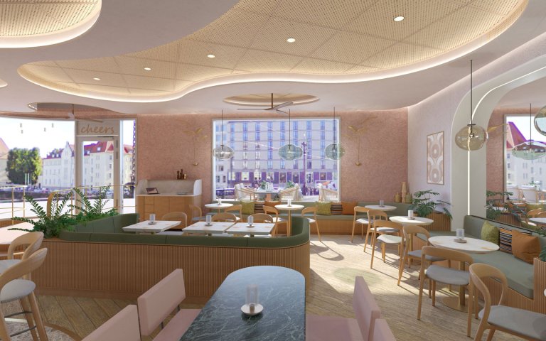 Das Innere des Restaurants entstand in enger Abstimmung der Berliner Architekten von OOW mit dem Designteam von Jamie Oliver. „Das Restaurant erstreckt sich über 200 Quadratmeter und bietet 100 Sitzplätze im Innenbereich sowie weitere 100 Außenplätze, die als grüne Oase mit einer Süd-Ost-Ausrichtung konzipiert sind. Das Design vereint skandinavische Leichtigkeit mit einem portugiesischen Lebensgefühl: Eichenmöbel kombinieren wir mit Naturstein, Rattan, portugiesischen Fliesen und ganz viel Grün“, beschreibt OOW das Restaurant in einer Mitteilung.