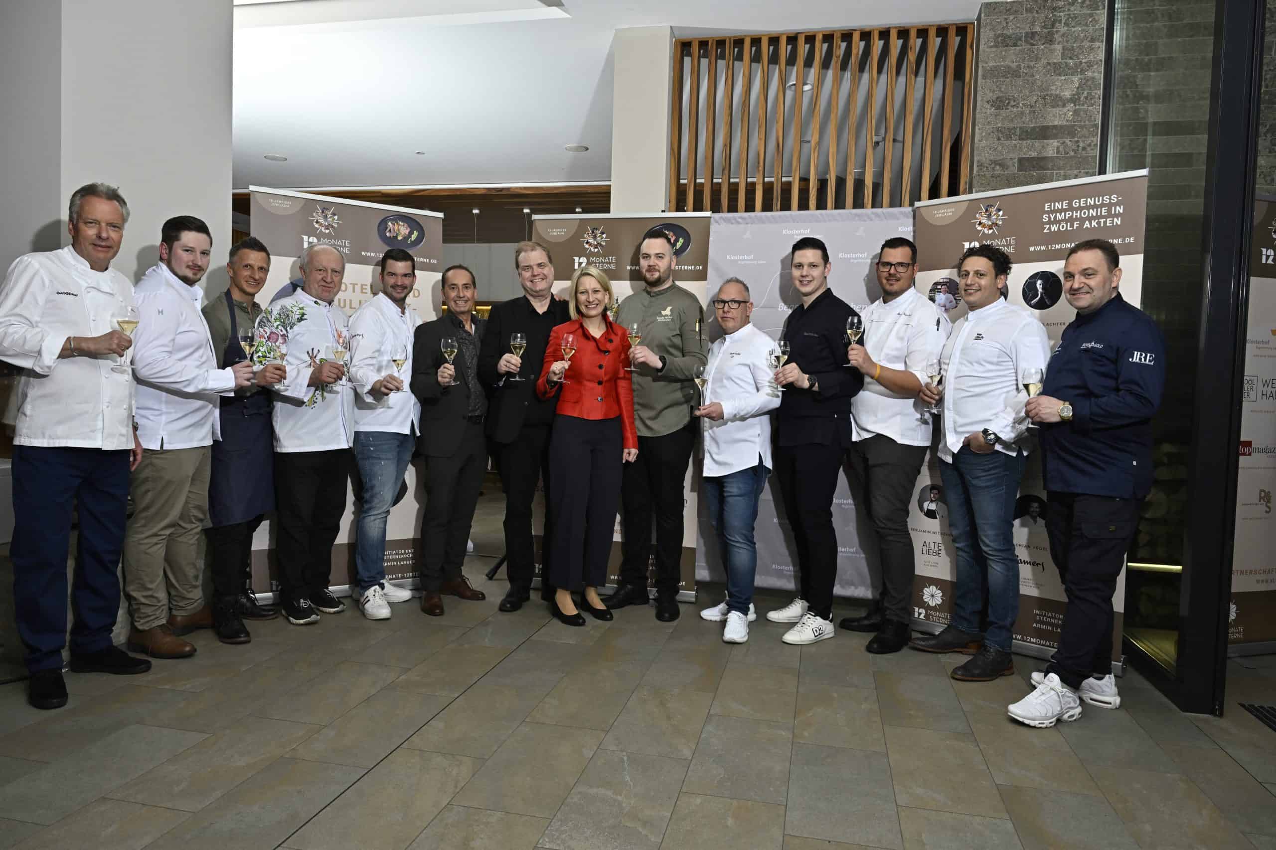 Anlässlich des 10-jährigen Jubiläums des Projekts „12 Monate 12 Sterne“ fand die diesjährige Gourmet-Gala am 21. Januar 2024 erstmals im Hotel Klosterhof Alpine Hideaway & Spa 4*S in Bayerisch Gmain statt. Dieses besondere Event hat eine besondere Location verdient. Vor den Toren von Salzburg verwöhnten 12 Sternköche rund 150 Gäste auf höchstem Niveau in dem wunderschön gelegenen Hotel. Die Gastgeber, Henrike und Dr. Andreas Färber sowie Sascha Förster, Küchenchef und sein Team leben Begeisterung, was an diesem Abend besonders spürbar war. Initiator Armin Langer blickt dankbar auf einen rundum gelungen Abend zurück.